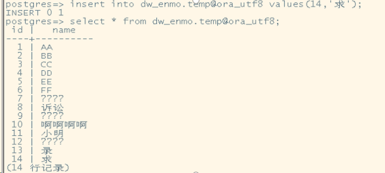实验证明,database link可以正常操作oracle,panwei的数据,无乱码。