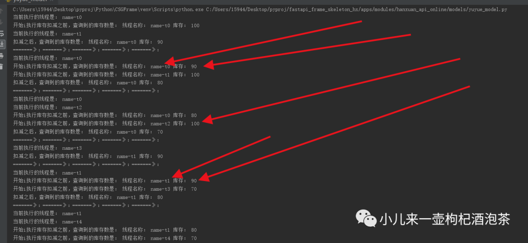 print("开始i执行库存扣减之前,查询到的库存数是:", '线程名称:', threading.current_thread().name, "库存:", result.stokenum)