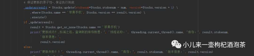 ps:其实上面的示例在库存更新的时候,还存在一个原子性得到问题,在PEEWEE建议使用API来update来执行更新,
