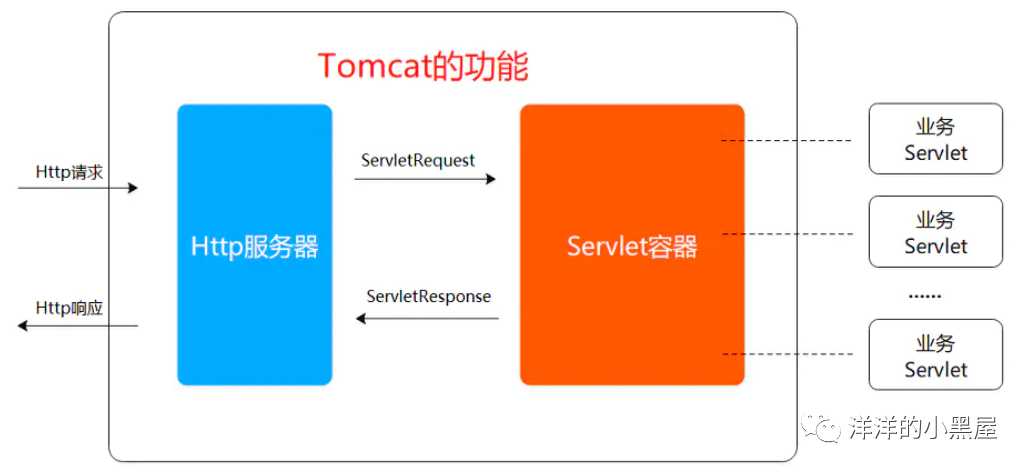 Servlet 容器功能:加载和管理 Servlet,由 Servlet 具体负责处理 Request 请求