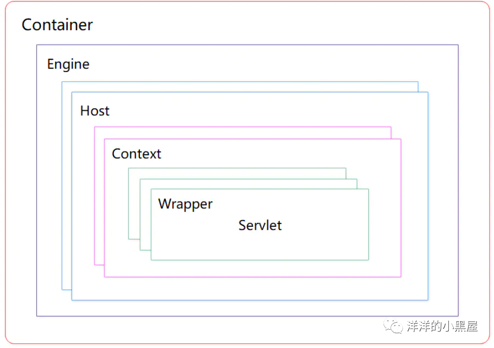 Container组件又称作Catalina,其是Tomcat的核心。在Container中,有4种容器,分别是Engine、Host、Context、Wrapper。这四种容器成套娃式的分层结构设计。