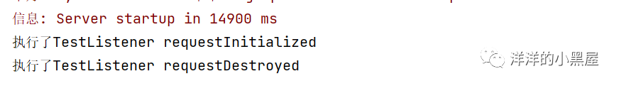 可以看到控制台打印了信息,tomcat先执行了requestInitialized