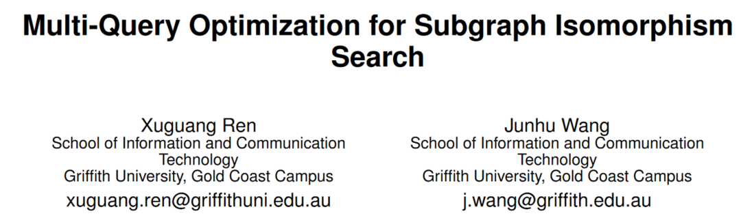 [4] Ren, Xuguang, and Junhu Wang. "Multi-query optimization for subgraph isomorphism search." Proceedings of the VLDB Endowment 10.3 (2016): 121-132.