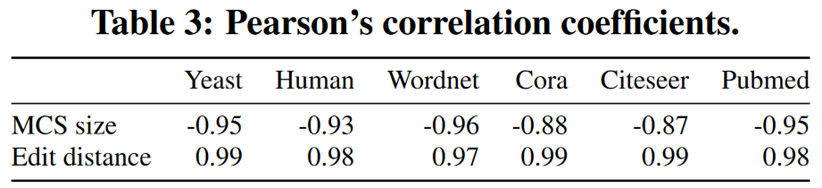 实验展示了 embedding 的相似性和图之间的相似性的相关性。图之间的相似性通过编辑距离和最大公共子图衡量。