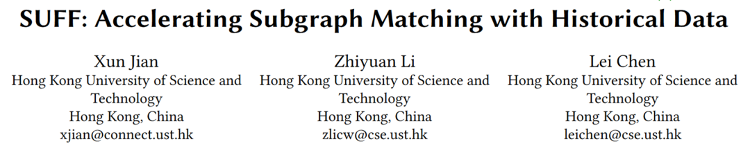 [2] Jian, Xun, Zhiyuan Li, and Lei Chen. "Suff: accelerating subgraph matching with historical data." Proceedings of the VLDB Endowment 16.7 (2023): 1699-1711.