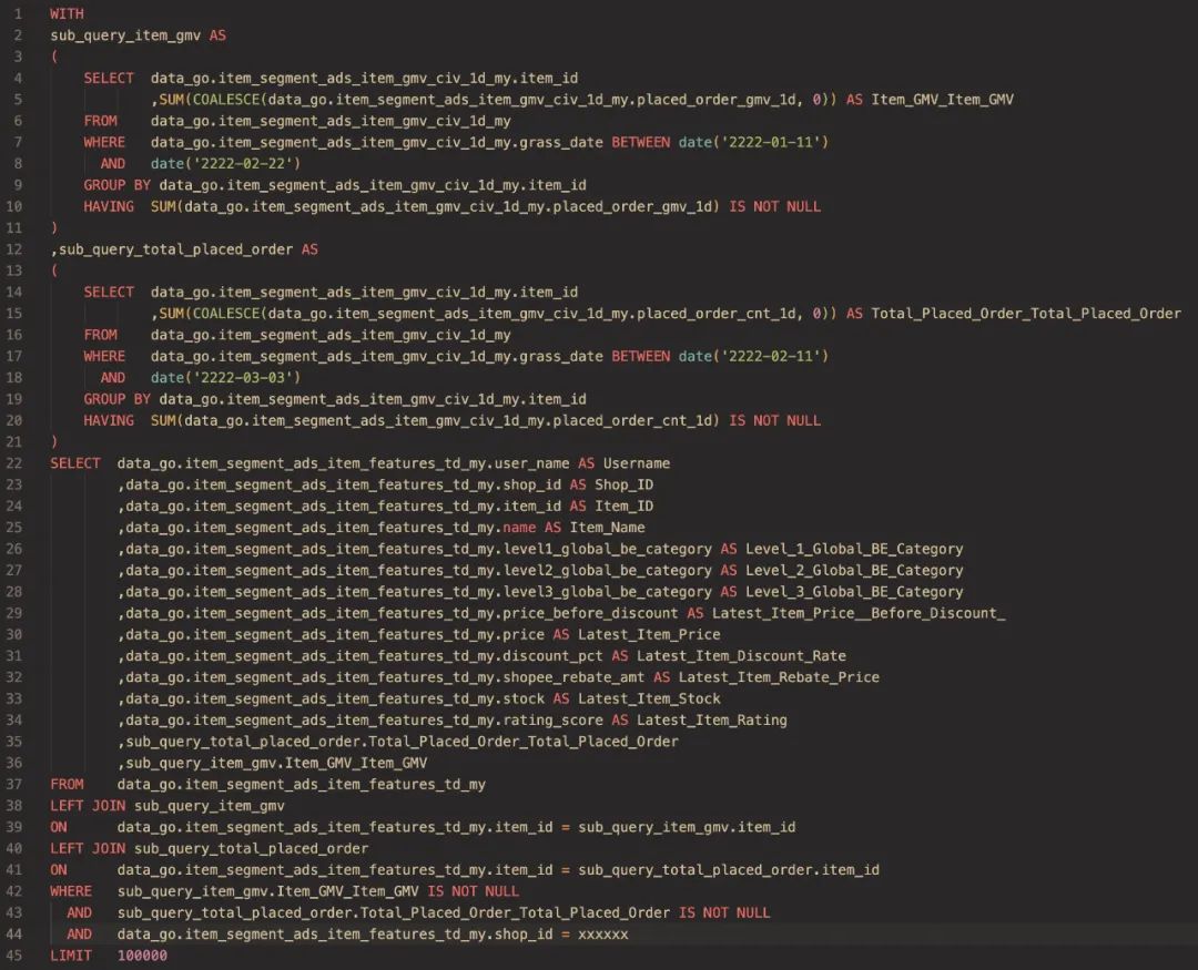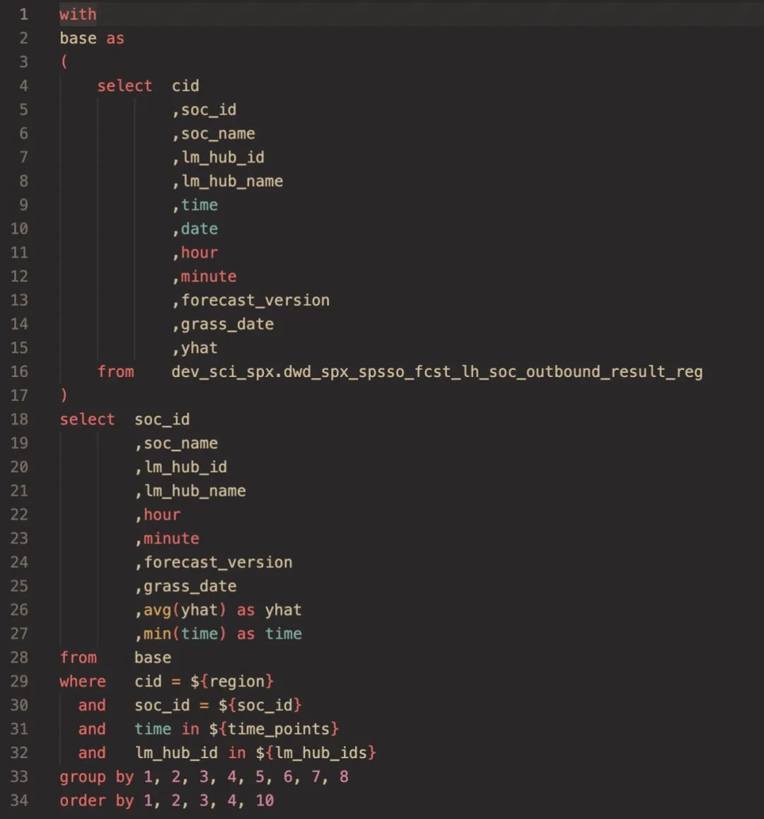 Data Service 利用 StarRocks 来加速查询,这一功能称为 olap-speedup。以下查询为例。Data Service 首先要求用户把 SQL 逻辑写成 CTE 的模式然后后端会将用户的 SQL with 部分 提取出来改造成 StarRocks 异步物化视图的 create stmt。"With" 语句中的 SQL 称为公共表表达式(CTE)。