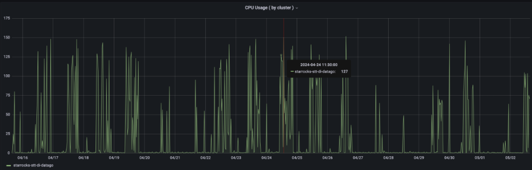 峰值 CPU 用量:150 core 均值 CPU 用量:40 core
