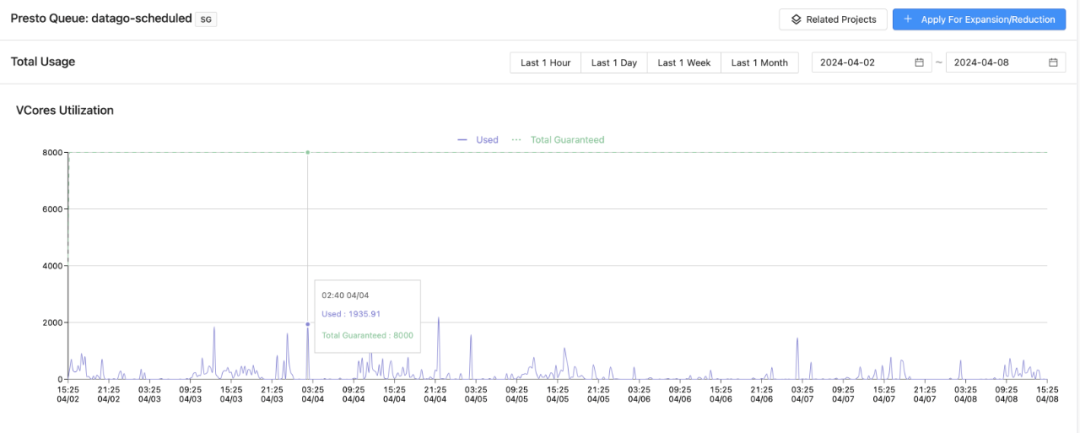 峰值 CPU 用量:2000 core 均值 CPU 用量:100 cores