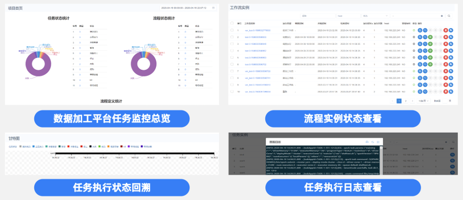 从 Apache DolphinScheduler 调度平台界面能够看出来,DolphinScheduler 会实时关注任务运行状态,同时,可以直观地看到每个工作流的每个环节,可以轻松在线回溯任务状态。