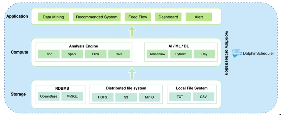 下图是 Dolphinscheduler 和 OceanBase 的解决方案,架构分为三层: