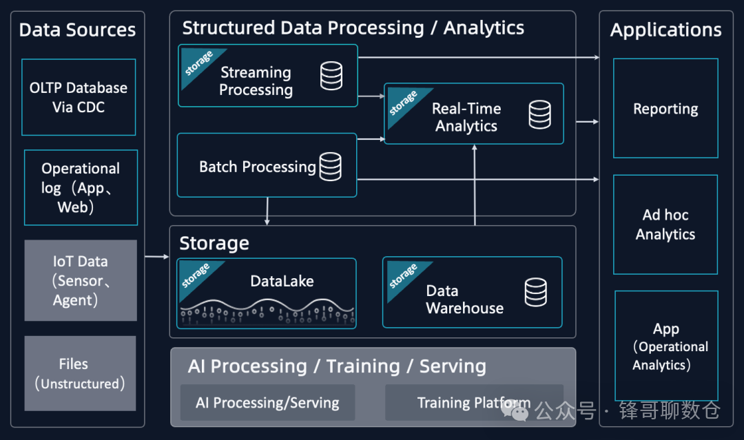 以下通过三个不同场景数据架构的实例,总结当前数据平台的典型架构: