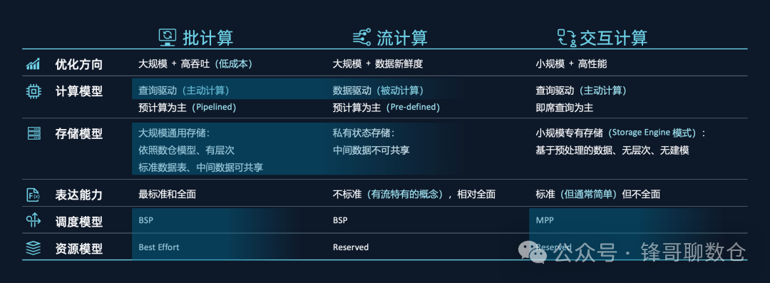 而交互分析为了更好的性能,通常采用 Massive Parallel Processing(MPP)调度模型,资源需要保持预置,数据被静态划分好,面向低延迟和高性能优化,但有很高的成本。