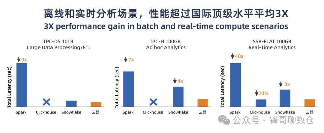 图 9: 云器 Lakehouse 离线和实时分析场景性能指标