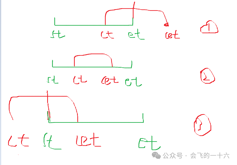 判断条件 ct <= st and cet >= st 重叠区间为【st,cet】