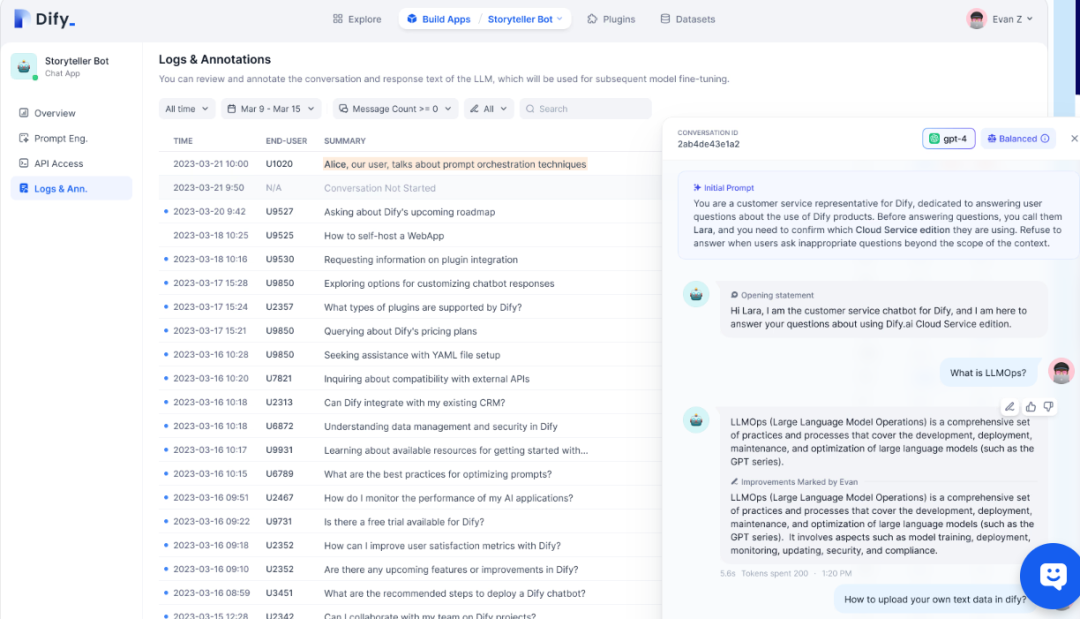 LLMOps:能够监控和分析应用程序日志和性能随时间变化,根据生产数据和标注持续优化提示、数据集和模型。
