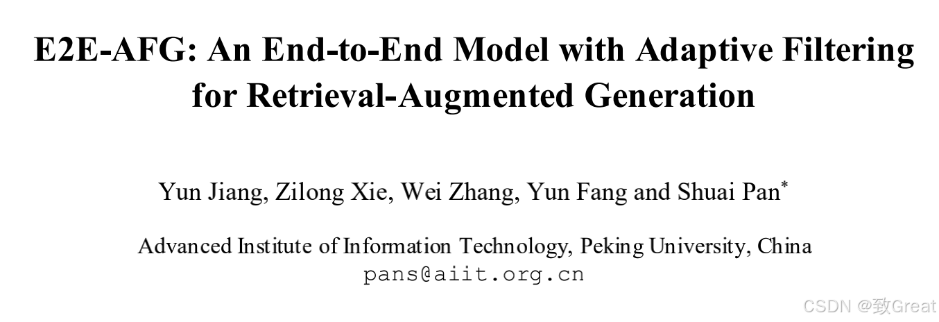 为了解决这些问题,论文提出了一个端到端模型E2E-AFG(End-to-End Model with Adaptive Filtering for Retrieval-Augmented Generation),该模型将答案存在判断和文本生成集成到一个单一的端到端框架中,使模型能够更有效地关注相关内容,减少不相关信息的影响,并生成准确的答案。