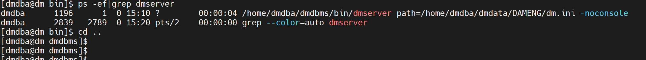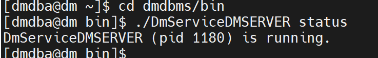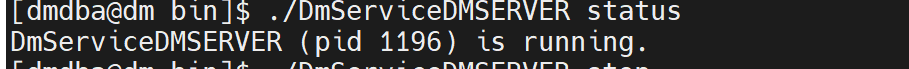 [dmdba@dm bin]$ ./DmServiceDMSERVER stop #单机db服务名