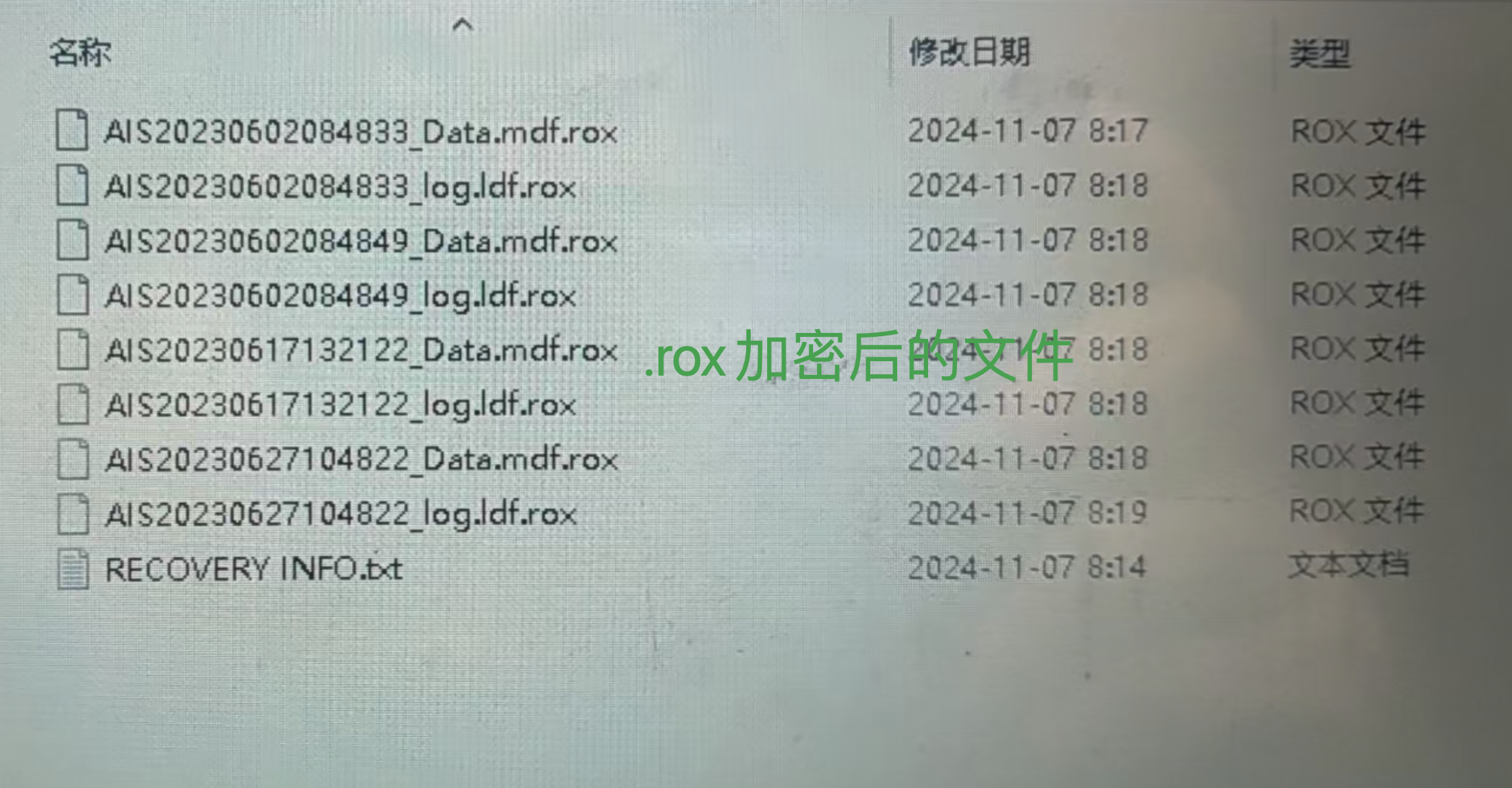 .rox勒索病毒作为一种新兴的勒索病毒,正以极具破坏性的方式影响着企业和个人的数字安全。它通过复杂的加密手段锁定用户的关键文件,留下勒索信威胁受害者支付高额赎金,才能恢复数据。随着网络攻击手段的不断升级,应对 .rox 病毒不仅需要有效的恢复措施,还需增强日常防护和安全意识。本文将深入剖析 .rox 病毒的运作机制,提供可行的数据恢复方法,并介绍如何通过预防策略来避免病毒的侵害。如果不幸中招,千万不要慌乱,因为我们的技术服务号(shuju315)为您提供全方位的帮助。