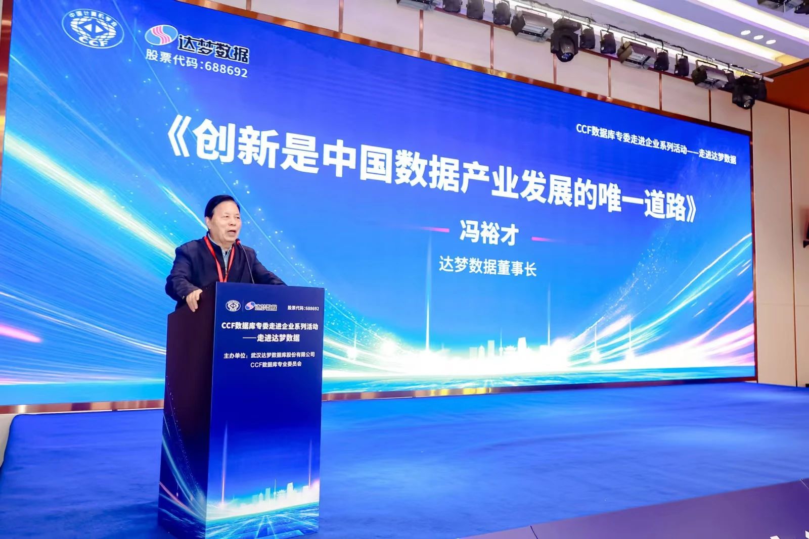 随后,达梦数据董事长冯裕才发表了题为《创新是中国数据产业发展的唯一道路》的主题演讲。冯裕才先生从行业现状、技术挑战及未来趋势等多个角度,深入剖析了创新在数据产业发展中的核心地位,并分享了达梦数据在技术创新方面的实践经验。