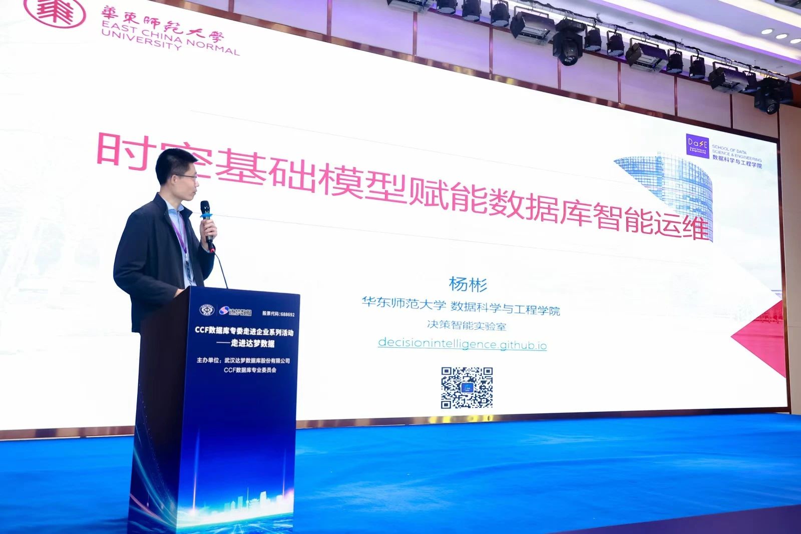 华东师范大学数据科学与工程学院杨彬教授带来了《时空基础模型赋能数据库智能运维》的报告分享。他围绕“数据-治理-分析-决策”这一研究范式展开,深入探讨了时空技术在数据库智能运维中的应用,并介绍了其在云数据库自动扩缩容、云数据库根因定位、自动化时序预测和时序预测基准评测等方面的最新进展。