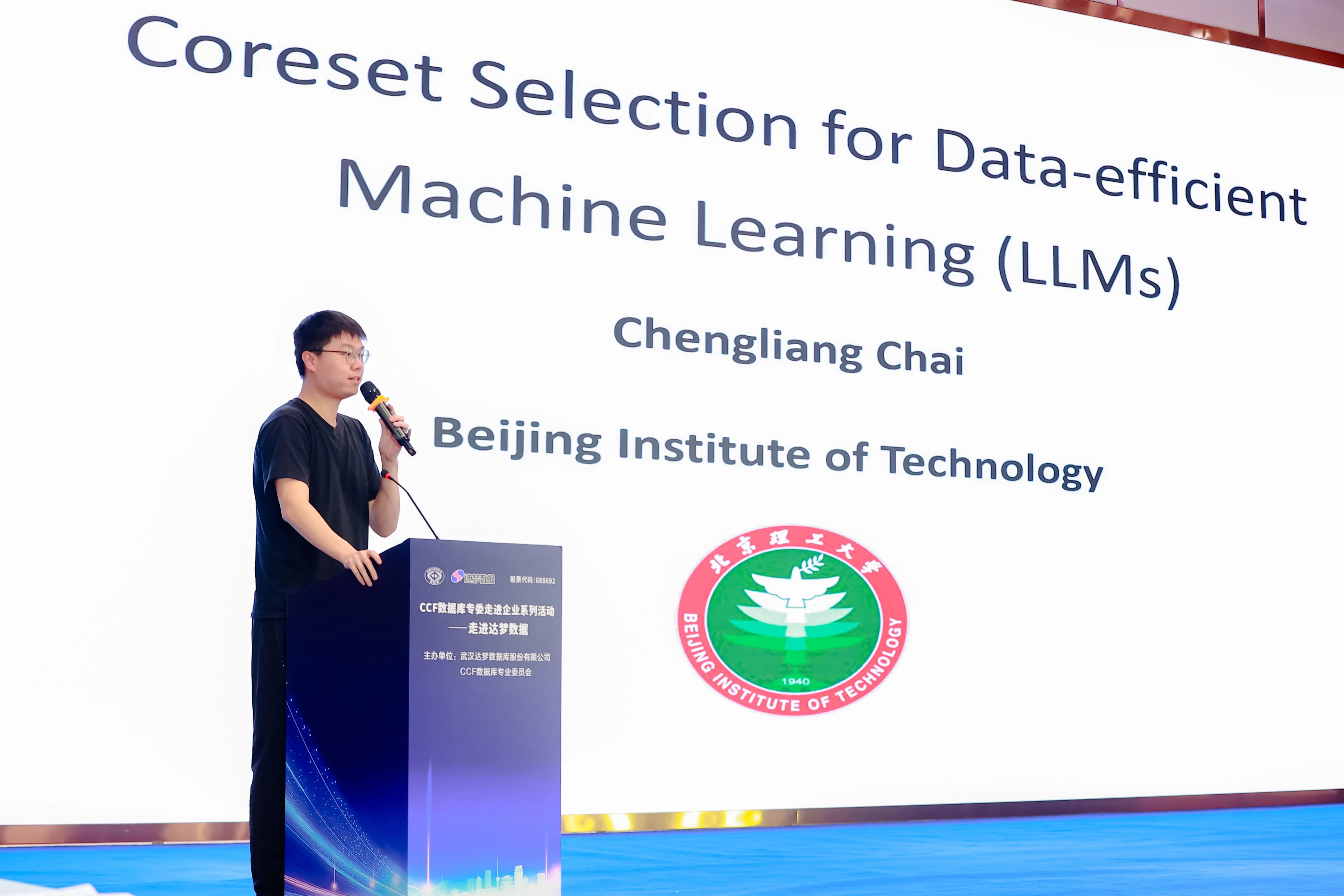 北京理工大学计算机学院副教授柴成亮为现场嘉宾带来《Coreset Selection for Data-efficient Machine Learning (LLMs)》报告,介绍了该团队在高效模型训练方面的研究。