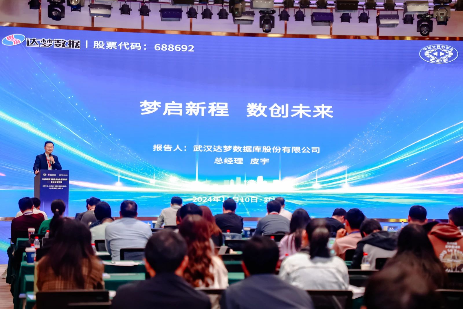 活动尾声,达梦数据总经理皮宇先生带来了《梦启新程,数创未来》的主题演讲。他详细阐述了达梦数据未来的发展蓝图,包括技术创新、市场拓展、生态构建等方面的战略规划,表达了与学术界深入合作的强烈意愿。