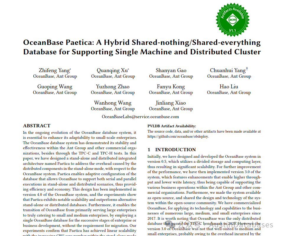 这篇OB的白皮书名字叫 《OceanBase Paetica:支持单机和分布式集群的混合无共享 一切共享数据库》