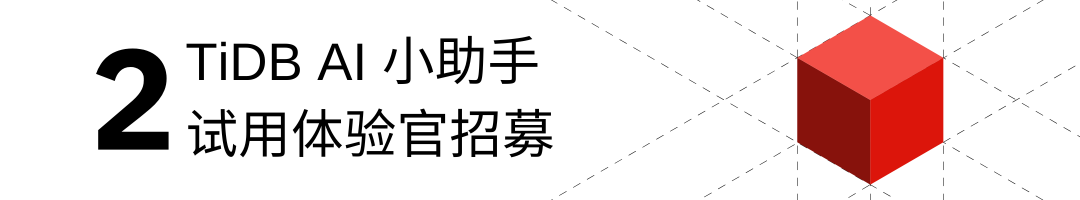 🌟 优先体验 TiDB AI 小助手的最新功能,走在 RAG 技术前沿;