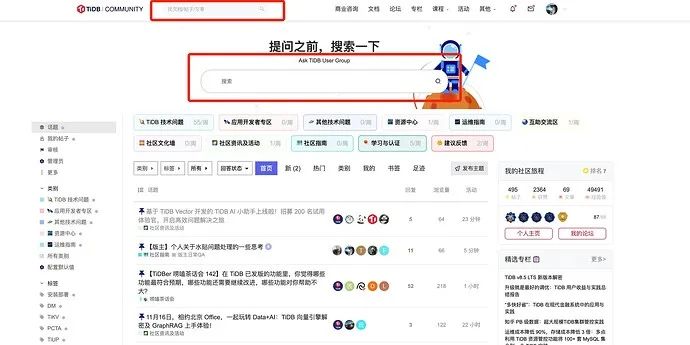 报名后,管理人员帮你开启 TiDB AI 小助手权限之后,你可以在以下入口唤醒 AI 回复你的技术问题。