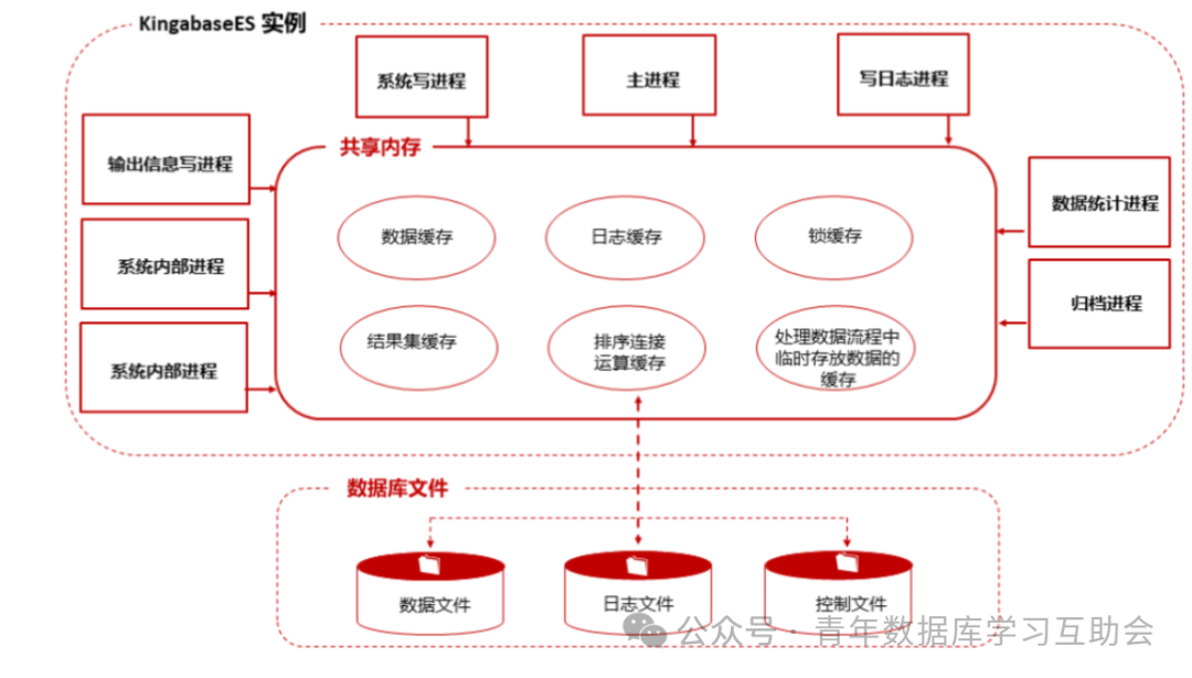 KingbaseES实例是一个多进程结构,每个实例中包含多个进程。这些进程协同工作,确保数据库的正常运行和高效管理。