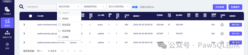 在数据库运维管理中,慢查询一直是影响系统性能的重要因素。本文将详细介绍PawSQL数据库性能巡检平台在慢查询管理和优化方面的功能特性,帮助数据库管理员更好地应对性能挑战。