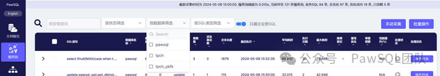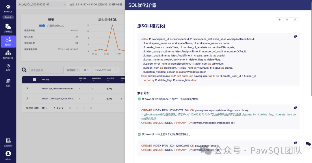 SQL优化从未如此简单,PawSQL Cloud实践指南 PawSQL数据库性能巡检平台 (1) - 简介 PawSQL数据库性能巡检平台(2) - 数据库对象巡检 获取更多关于PawSQL的信息,点击关注PawSQL公众号👇👇👇