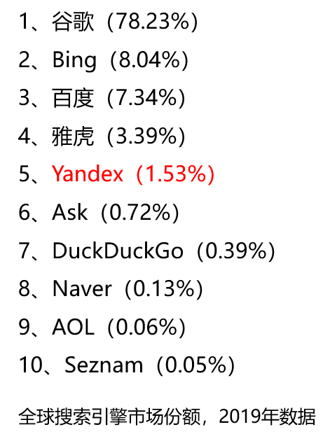 2019年,Yandex的搜索排名是第5,