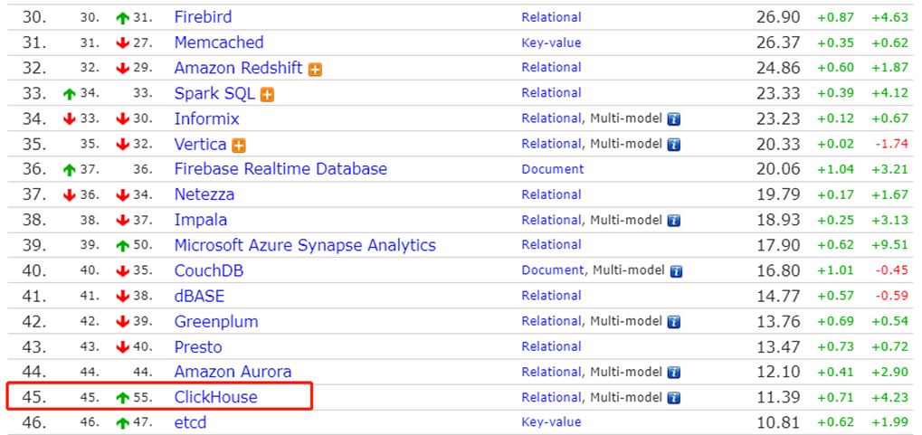 DB-Engines的排名是45,