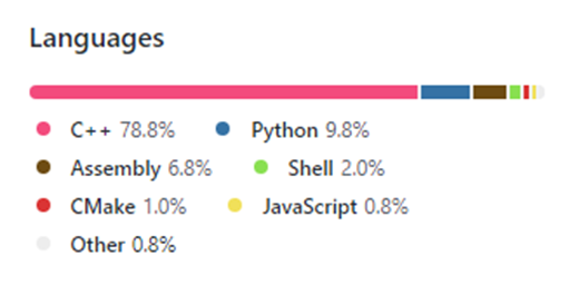 ClickHouse的代码主要采用C++,还有少量的Python、Shell和js,追求性能的应用,还是倾向这种偏底层的语言,这可能是其他语言不具备的优势,