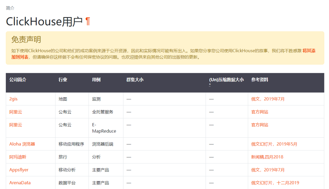 https://clickhouse.com/docs/zh/introduction/adopters/