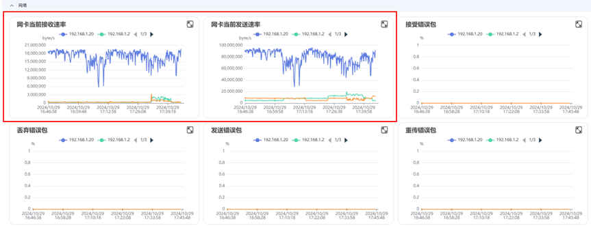 点击网络菜单,可以查看网络传输速率及网卡是否有丢包、错包等情况,如图4所示。