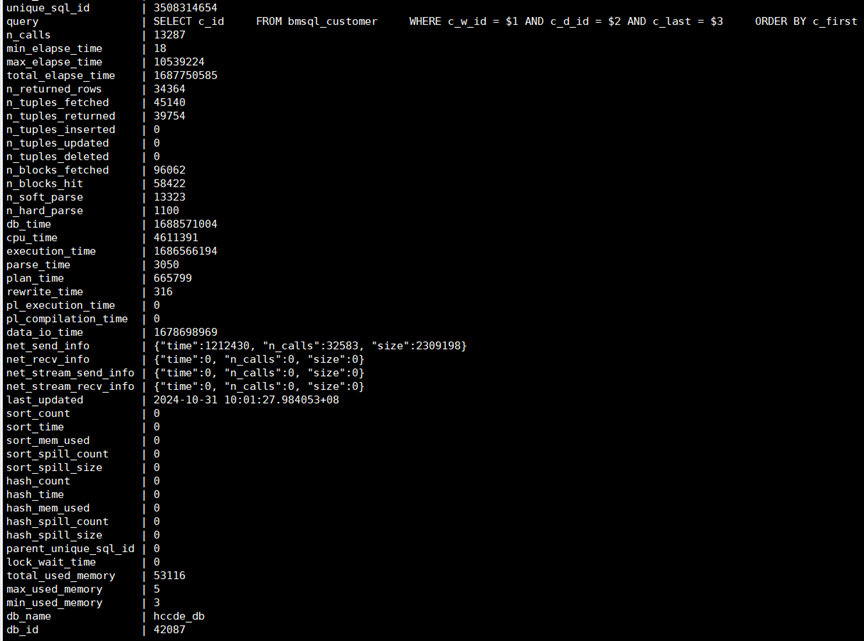 select * from dbe_perf.statement whereunique_sql_id=3508314654;