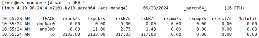 通过 sar -n DEV 1 命令,查看网络的传输情况。
