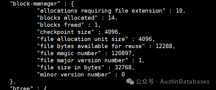 我们下面做一个例子,这是一个collection,进行stats()后取的block-manager的信息,这个表非常小,部分情况展示的不是很明显。