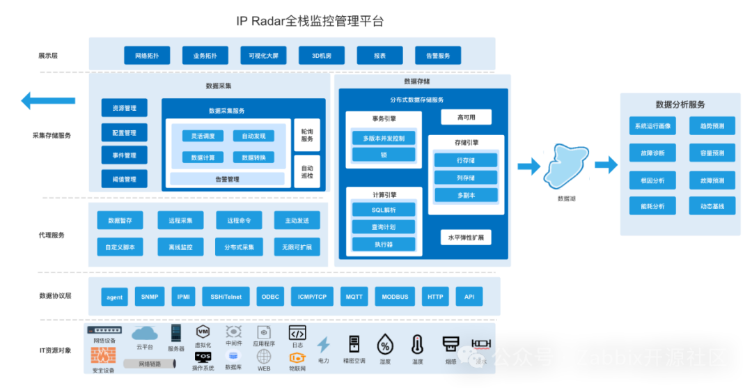 中南财经政法大学基于Zabbix 7.0平台开发的IP Radar系统,通过综合运用多种监控协议和技术,实现了对全校IT基础设施和业务系统的全方位监控管理。具体来说,系统主要通过以下几种核心技术进行数据采集和监控: