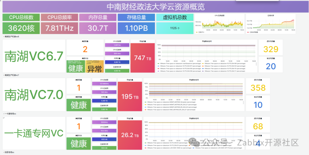 中南财经政法大学 基于Zabbix 7.0平台,开发了高可用的IP Radar监控管理系统,以满足IT信息管理部的精细化运维需求。该系统覆盖全校28000余台主机和用户,监控项目超过115万,成为中国教育行业规模最大、应用最广泛、监控数据量最多的案例之一。
