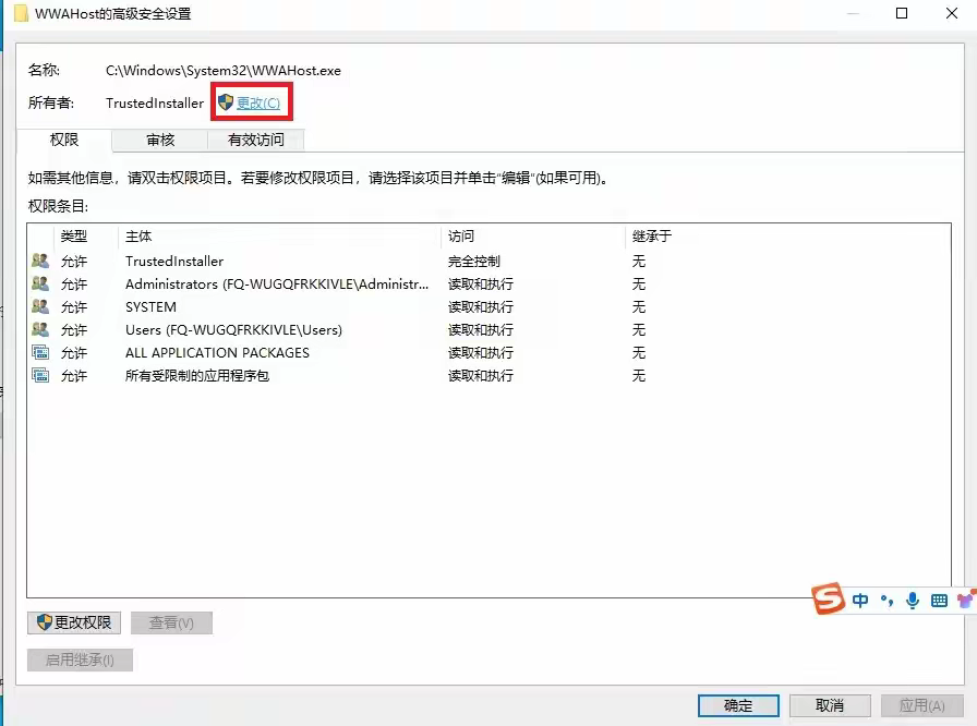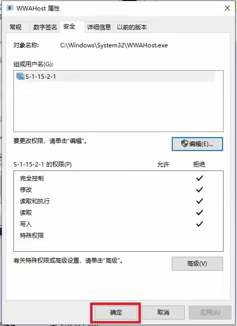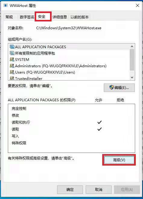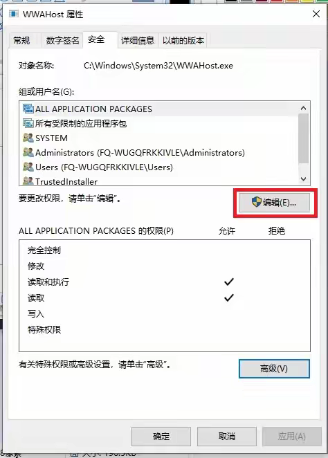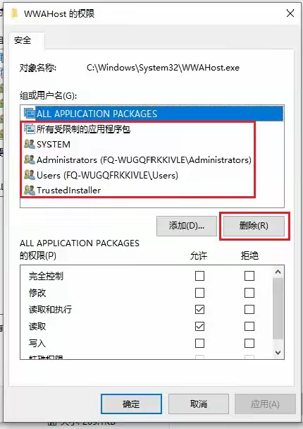 把组或用户名中的其他删除,只保留“ALL APPLICATION PACKAGES”。