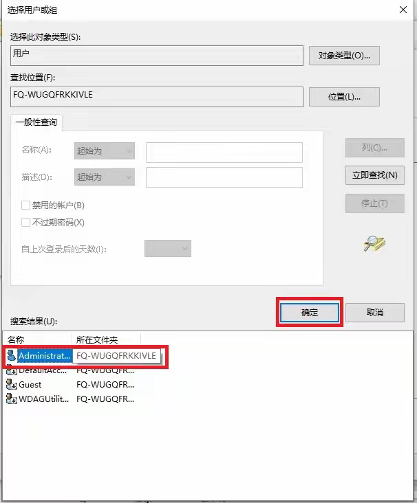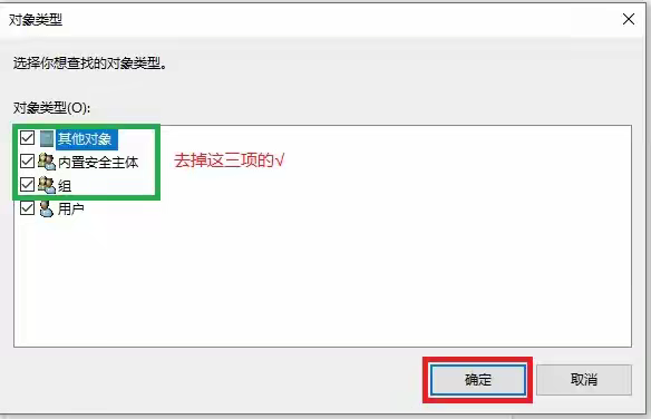 在“对象类型”中保留用户前的√,其他的去掉,然后点击确定。