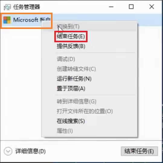 如何关闭呢?方法很多,比如可以先按shift+f10,然后同时按Ctrl+Shift+Esc,调出任务管理器,选择Microsoft账户,右键选择“结束任务”即可进入系统。