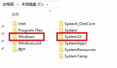 在结束Microsoft账户进入系统后,在C盘中,依次打开Windows→System32