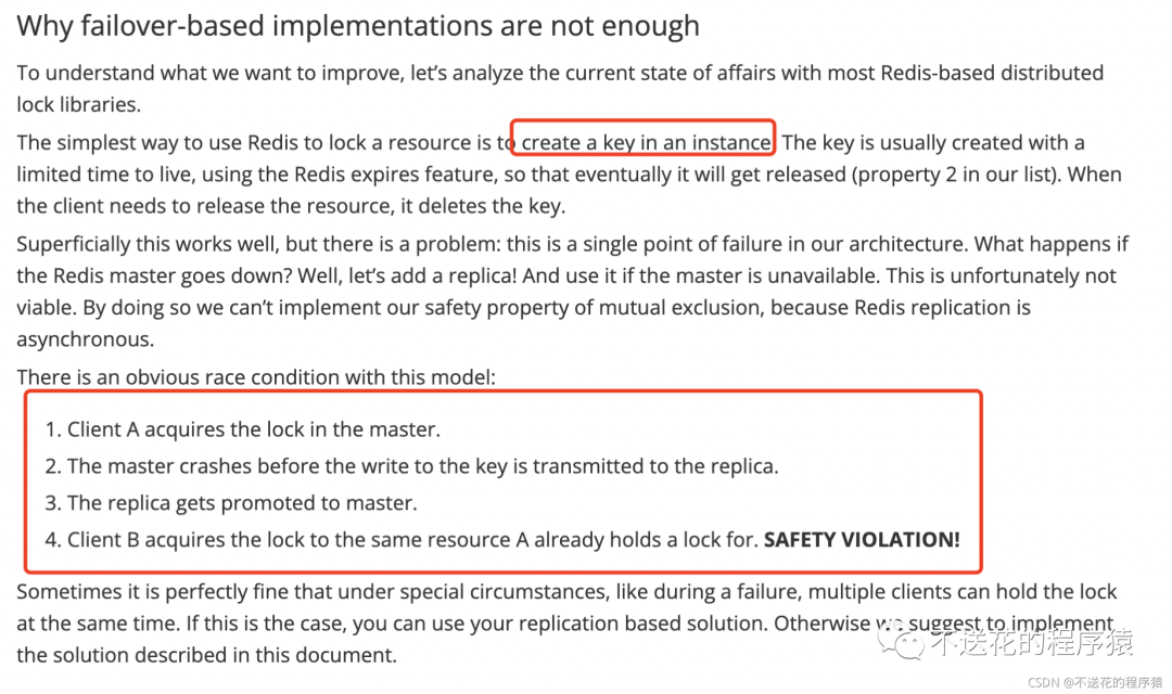 其实这个场景,redis 官网在介绍 RedLock 算法的时候也提到了~