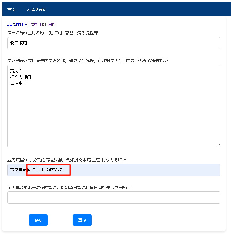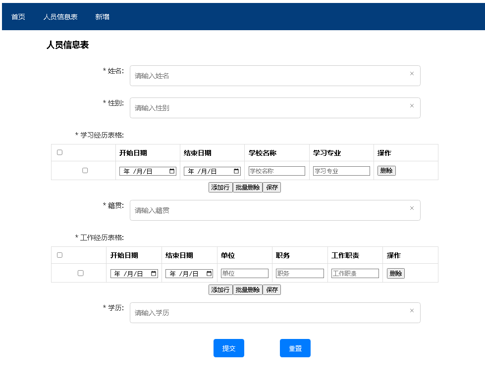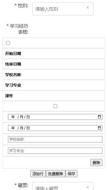 常规表单中镶嵌表格的需求比较常见,比如人员信息登记表中的个人学习经历,工作经历都会涉及。比如商品物资采购,商品入库等都会涉及一个表单中通过动态增加多条子表单的功能。