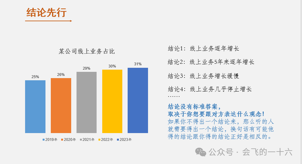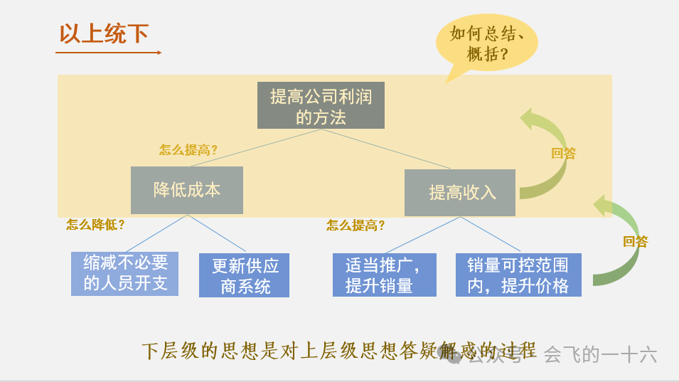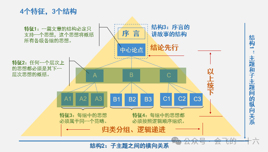 纵向关系:结论先行,以上统下(演绎推理+归纳推理),突出重点,层次分明。任何一个层次上的思想都必须是对下一个层次思想的概括,每一个下级层级都是对上一层级的解释说明,纵向体现了对中心思想的多维拆解与归因分析。
