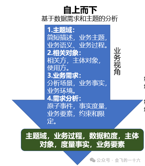 依据维度建模方法,确定主体维度(业务主体)、时间维度、分析维度(域内维度)、业务限定以及事实度量。